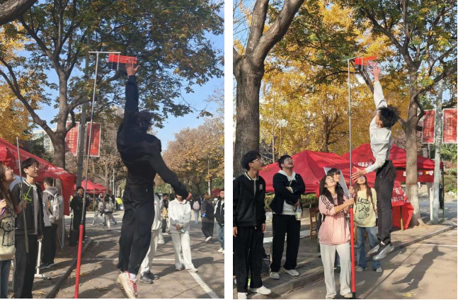 活动设置“跃高逐碧浪”“绘魂筑墙 笔述英雄”“转动历史 铭记心头”三大特色环节。在摸高挑战区,同学们踊跃参与、奋勇争先,展现出昂扬向上的精神风貌;涂鸦创作区中,大家执笔绘制五角星、“保家卫国”等主题图案,将空白展板凝聚为一座“英雄精神可视化墙”;历史学习区则通过转盘答题、讲述“上甘岭战役”等互动方式,推动红色记忆入脑入心。现场气氛热烈,参与学生在沉浸式体验中进一步增强了爱国情怀与使命意识。