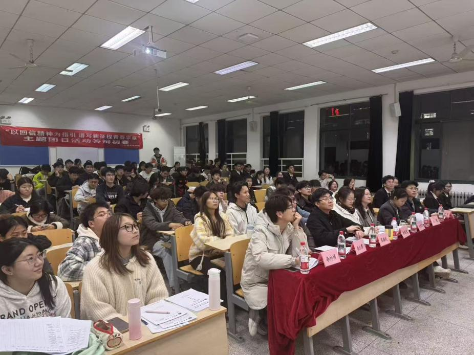 答辩会在庄严的国歌与团歌声中拉开帷幕。随后,17个团支部依次上台,围绕主题契合度、活动创新性、实施效果等方面,通过案例讲解、数据分析和成果展示,全面呈现了各支部在回信精神引领下开展的特色活动和实践成效,展现了团员青年锤炼本领、担当使命的青春风貌。