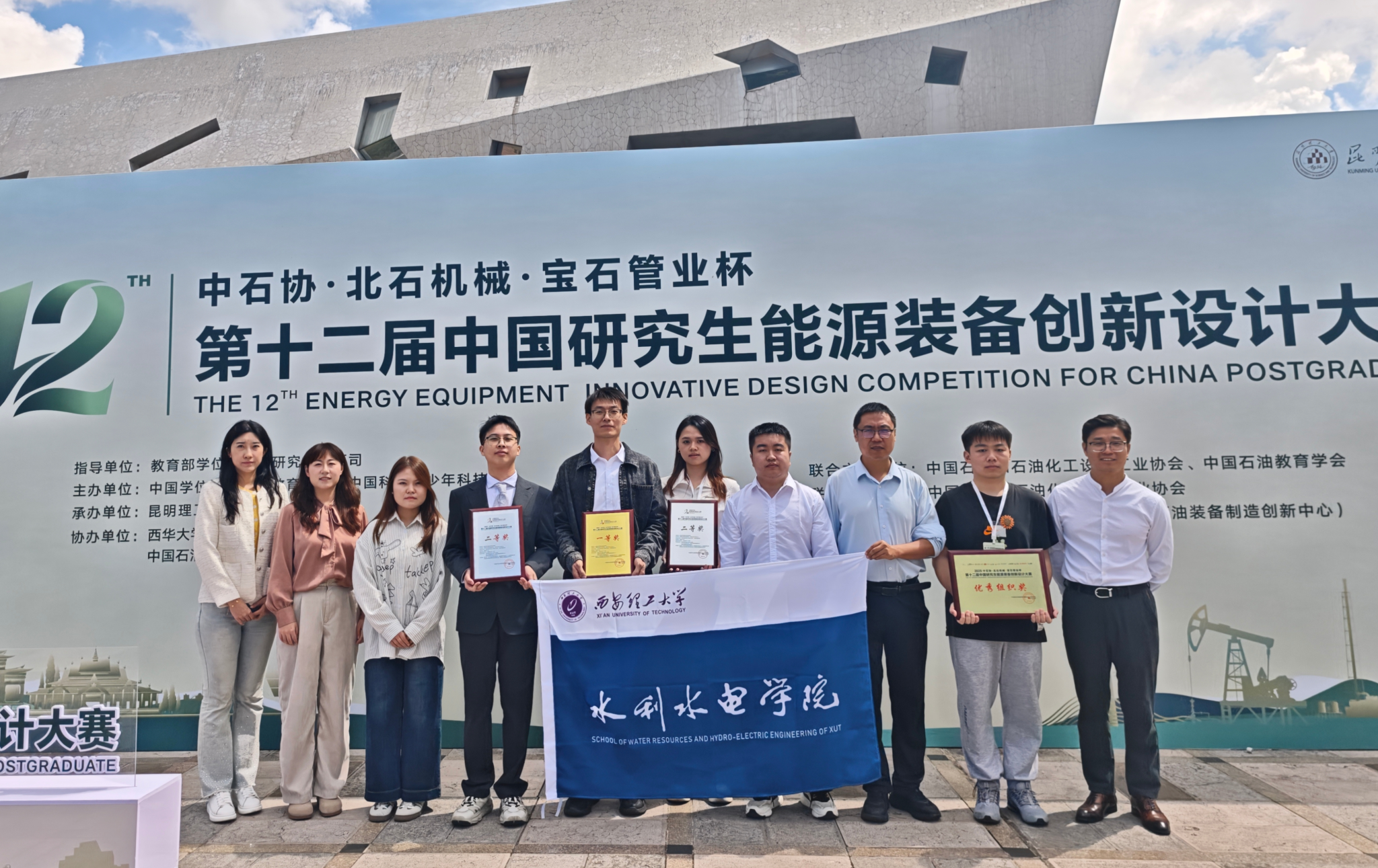 9月19日至21日,第十二届中国研究生能源装备创新设计大赛全国决赛在云南省昆明市举行。经过激烈角逐,我院郭鹏程老师、孙帅辉老师指导的“基于声流耦合的水轮机材料多因素协同磨蚀试验装置(队长:武鹏波)”作品荣获国家级一等奖,首次进入“能源之星”决赛圈。贺登辉老师指导的“驭气澄流—面向高端化工装备的新型气液两相离心泵研发与应用(队长:罗南)”、朱国俊老师、冯建军老师指导的“微澜智汇——智能微水头发电系统(队长:宣奕帆)”和王李科老师、卢金玲老师指导的“鳍刃破泡-基于座头鲸鳍仿生的离心泵抗空化叶片创新设计(队长:刘永刚)”3项作品荣获国家级二等奖,另有3项作品荣获国家级三等奖。我院郭鹏程老师和孙帅辉老师荣获“优秀指导教师”称号。