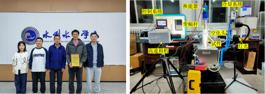 作品介绍:本作品针对水轮机在多泥沙河流中面临的磨蚀损伤问题,研发了一套基于声流耦合的水轮机材料多因素协同磨蚀试验装置。该装置可以开展不同水流速度、冲击角度、泥沙浓度、粒径及空化强度等多因素交互试验,通过高速摄像与图像处理技术量化空化强度,结合响应面法分析方法获取多因素耦合作用磨蚀机制。相关研究成果已获发明专利授权,获陕西省研究生创新成果展C档并在教师报等平台报道。该装置及相关研究成果可为我国水电装备抗磨蚀材料选型与防护提供重要的理论依据和技术支撑。